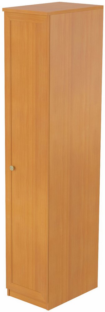 Узкий, но высокий шкаф для одежды выполнен из ЛДСП толщиной 22 мм, торцы облицованы ПВХ кромкой 2 мм. Каркас шкафа и полки выполнены из ЛДСП толщиной 18 мм. ЛДСП меламиновое, класс эмиссии Е1, рекомендовано для использования в медицинских и детских учреждениях. Фасад с отделкой из МДФ.