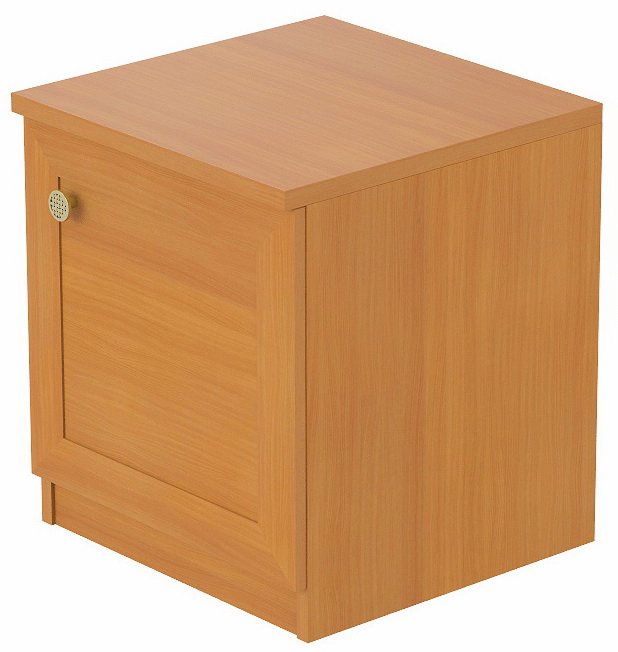 Небольшая прикроватная тумба для личных вещей. Топ тумбы выполнен из ЛДСП толщиной 22 мм, торцы облицованы ПВХ кромкой 2 мм. Каркас тумбы выполнен из ЛДСП толщиной 18 мм. ЛДСП меламиновое, класс эмиссии Е1, рекомендовано для использования в медицинских и детских учреждениях. Фасад с отделкой из МДФ.