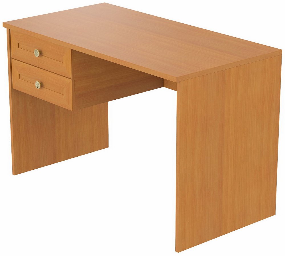 Изящный стол для работы с двумя ящиками для личных вещей. Столешница из ЛДСП толщиной 22 мм. Кромка облицована ПВХ кромкой 2 мм. Боковые опоры из ЛСДП 18 мм. Облицовка ПВХ кромкой 0,4 мм. ЛДСП меламиновое, класс эмиссии Е1, рекомендовано для использования в медицинских и детских учреждениях. Ящики стола выполнены фактурной отделкой из МДФ.