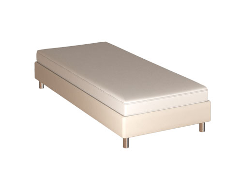 Кровать  «Спринг-бокс» серии Отель состоит из основания и матраса. Основание под матрас состоит из деревянного каркаса. Конструкция каркаса: две деревянные рамы верхняя (30х40 мм) и нижняя (30х60 мм) соединенные между собой вертикальными брусками, с тремя ребрами жесткости, бортиком 3 см для фиксации матраса и жестко закрепленной фанеры сверху основания. В стандартном исполнении применяется матрас на пружинном блоке «Боннель» с взаимосвязанными пружинами, усиленный по периметру «эластофлкексом». Матрас обивается хлопковым огнеупорным жаккардом стеганным на синтепоне 200 гр/м2. Ножки спринг-бокса не регулируемые, высота 5 см.