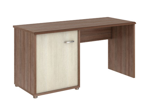 Стол письменный с фриго-баром. Каркас стола выполнен из ЛДСП толщиной 25 мм, облицован кромкой ПВХ 2 мм; задняя стенка стола -  ЛДСП 16 мм, кромка ПВХ толщиной 0,4 мм. На передней кромке столешницы располагается накладка из массива Бука, тонированная в цвет столешницы. Лицевая фурнитура - матовый хром. Фриго-бар предполагает размещение мини-холодильника.